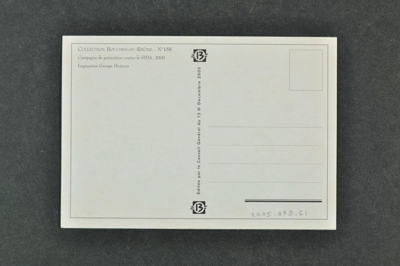 COLLECTION BOUCHES-DE-RHÔNE - N°158 // Campagne de prévention contre le SIDA. 2000 // Impression Groupe Horizon (Texte imprimé en caractères noirs et placé dans l'angle supérieur gauche), versoSavoir vite... pour mieux agir // // Centre d'Information et de Dépistage Anonyme & Gratuit // Dispensaires Anti-Vénériens (Texte imprimé en jaune et en blanc sur fond bleu dans la partie inférieure), rectoTitre
