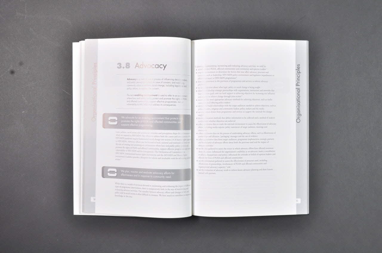 renewing our voice. // Code of Good Practice // for NGOs responding to HIV/AIDS (pages 10 à 13), sur la couvertureSommaire