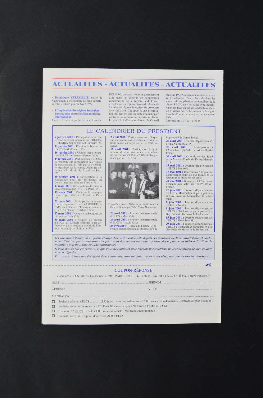 lettre, La lettre des Elus locaux contre le sida, ELCS Infos, n°6 avril 2001