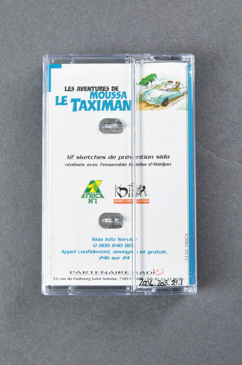 Les aventures de Moussa le taximan, sur la couvertureProgramme radio pour le lutte contre le sida, en haut1. Islam et sida // 2. Chrétien et sida // 3. Les sectes et le sida // 4. Les pratiques traditionnelles et le sida // 5. Les modes de transmission du sida et les fausses croyances // 6. Le bon usage du préservatif // 7. Fragilité de la femme face au sida // 8. Séropositivité et désir d'enfant // 9. Solidarité avec une personne atteinte // 10. L'engagement personnel pour lutter contre le sida // 11. Personne atteinte et sans papier : accès aux soins // 12. le déroulement d'un test de dépistageTexte