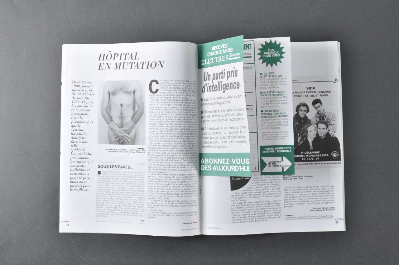 p. 20-21 Eric Lamien. La prévention en quelques campagnes. Photos de 8 affiches de campagnes : "Le sida, il ne passera pas par moi" (CFES 1987) / "Les préservatifs vous souhaitent de bonnes vacances" (AFLS, 1989) / "J'ai toujours entretenu d'excellents rapports avec le sexe" (AFLS, 1989) / "Si je suis séropositive, tu me trouves toujours jolie ?" (AFLS, 1991) / "Et si je n'ai pas toujours utilisé de préservatifs?" (AFLS, 1992) / "Les préservatifs. Aujourd'hui, tout le monde dit oui" (AFLS, 1992), "Sida. Le monde entier en parle pour qu'un jour on n'en parle plus"(Mairie de Paris, 1991), "Les préservatifs préservent de tout, de tout sauf de l'amour" (2 hommes) (AFLS/Gai Pied Hebdo, 1989) // Historique des campagnes françaises (1ère campagne d'envergure nationale en 1987, sous l'impulsion de Mme Barzach, 6 ans après le début de l'épidémie ; première campagne de solidarité 10 ans après le début de l'épidémie ; première campagne nationale sur le recours au test de dépistage, 7 ans après leur mise sur le marché ; première déclinaison, avec un visuel spécifique en direction des homosexuels, d'une campagne nationale tout public, 8 ans après le début de l'épidémie. // Critique des campagnes de l'AFLS : "Paradoxalement, dans un souci de dédramatisation poussé jusqu'à son paroxysme, le rapport entre préservatifs et sida n'est jamais mentionné. Autre parti pris : on ne visualise jamais l'objet et on en montre encore moins son mode d'utilisation." Message appuyé sur des rapports relationnels (groupes d'amis) plutôt que sur la sexualité. Sexe abordé de façon très allusive et résolument humoristique. "Grande pudeur". Visuels spécifiques dans les médias gais. "Mais comment s'adresser à la majorité des hommes qui ont des rapports sexuels avec d'autres hommes et qui ne lisent pas cette presse ou ne s'identifient pas comme homosexuels ? Pour prendre en compte cette nécessité, l'AFLS tend à insérer de timides allusions à l'homosexualité dans ses campagnes grand public, difficilement perceptibles, même par les intéressés." Autre carence : aucun message pour les usagers de drogue. // Pas de concertation avec les associations. "Cela donne des messages toujours timorés et dont les répercussions vont parfois à l'encontre des buts affichés. Ainsi, le slogan : le sida ne passera pas par moi renforce les fausses certitudes : Le sida ne me concerne pas. Les campagnes de solidarité (si je suis séropositive...) tentent d'établir une proximité avec les personnes directement concernées par l'épidémie. Elles n'en ont pas moins été critiquées : affirmation de son état de séropositivité tempérée par le recours au conditionnel, mode de relation basé sur l'imploration (dis-moi oui)"