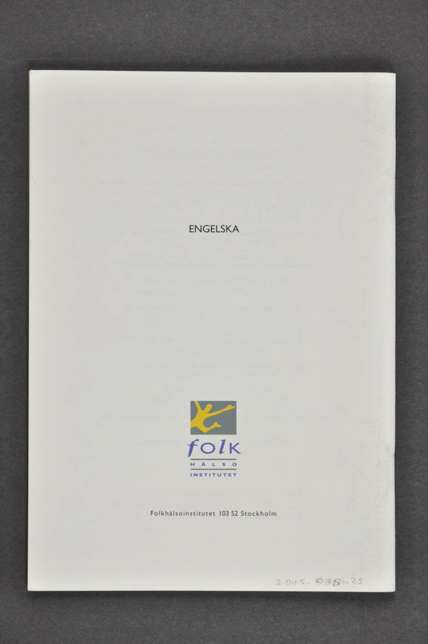 La couverture est sur fond blanc et porte à gauche un bandeau vertical gris et noir d'où se détache en blanc "F" stylisé. Au centre la page est illustrée d'une reproduction couleur d'un grand tableau de Francis Picabia :" les acrobates" (trois hommes pieds en l'air se tenant à une corde). En haut figure le titre de la brochure en caractères noires et le thème développé sous l'image. Le dos est sur fond blanc, et porte une inscription en caractères noirs sous laquelle figure un logo en forme de rectangle gris à l'intérieur duquel est représenté un personnage jaune. En dessous, sont inscrites des coordonnées de Folkhälsoinstitutet. L'intérieur porte des textes en caractères noirs sur fond blanc, et est illustré de reproductions couleur de tableaux de Marc Chagall (Soleil et mimosa), Bror Hjorth (Groupe rythmique), Jan Van Eyck (Giovanni et sa femme), Edvard Munch (Le baiser), Fragonard (La belle servante), Klimt (La Vierge), Gösta Adrian-Nilsson Gan (Dessin symbolique à l'encre de Chine), Peter Dahl (Nuit bleue). Tous ces tableaux représentent des couples.Inscriptions