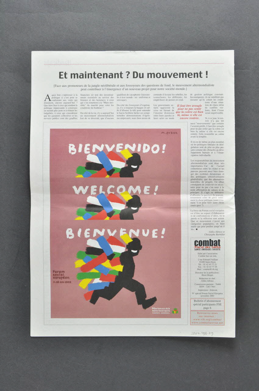 p.12 Gilles Alfonsi et Christophe Barbillat. "Et maintenant ? Du mouvement !" (Responsabilités du mouvement altermondialiste... La force du Forum social européen est d'être un espace d'élaboration et de confrontation d'idées où la parole et la réflexion sont action."
