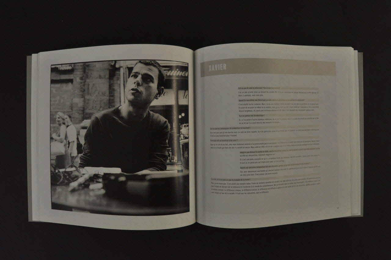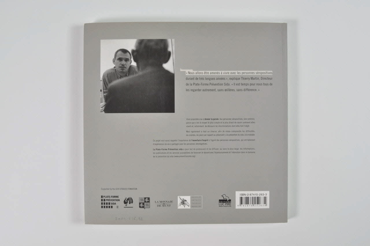 Liste des personnes interviewées, transcrite dans l'ancienne description : "Vanessa & Jean-Marc (tous les deux séronégatifs) ; Jean-Marc (séropositif) ; Jean-Claude (séropositif) ; Anne et Michèle (infirmières à l'Hôpital Saint-Pierre de Bruxelles) ; Jack (séropositif) ; Jamal (militant associatif) ; Yolande (survivante du génocide au Rwanda) ; Henri (volontaire associatif) ; Daniel (séropositif) ; Liesbeth (séropositive) ; "Un groupe de patients" (trois photos de 5 hommes séropositifs et volontaires associatifs) ; Laetitia (séronégative) ; Amine (séronégative) ; Hector (71 ans, séropositif) ; Abdel (9 photos, acteur de prévention) ; Arianne (présidente d'Act Up Bruxelles) ; Peter (Piot) (Directeur d'ONUSIDA) ; Aghali (séronégatif) ; Olivier (Gourmet) (acteur) ; Nikita (séronégative, travailleuse du sexe); Ousman (séropositif) ; Eric (séropositif) ; B. (séropositive et militante associative au Burundi) ; Zazy (militante associative) ; Hervé (militant associatif) ; Xavier (séronégatif) ; Gaëtan (séropositif et militant associatif) ; Catherine (séronégative) ; Philippe (d'Avilla) (artiste) ; Deux enfants séropositifs (4 photos uniquement d'objets) ; Donald (séropositif, volontaire associatif) ; Bernard (séropositif) ; Khadija (volontaire associative) ; Fatou(volontaire associative) ; Pascal (séropositif) ; Bernard (Foccroulle) (directeur de théâtre) ; Vincent, Nicolas, Jean-Marc (3 photos) (écoutants à Aide Info Sida) ; Myriam (militante associative) ; Patrick (séronégarif) ; Jean-Luc (Fonck) (artiste) ; Alexandre (Bouglione) ; Antonia (séropositive ) ; Henri (séropositif) ; Anne, Etienne et Pedro (5 photos) ; Auguste (président de Aide Info sida) ; Adrien (séropositif) ; Géraldine (séronégative) ; Frédéric (volontaire associatif ; Boris et Delphine (2 photos, militants associatifs) ; Marie-Jeanna (Wuidar) (médecin généraliste) ; Centre Séverine (7 photos) (Centre de planning) ; Anne (Vincent) (Coordinatrice médicale du Centre Elisa-Médecins sans frontières)."