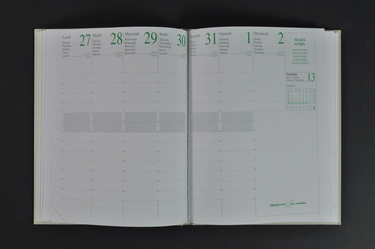 Sur toute la première page intérieure : "Cet agenda est vendu au profit de Dessine moi un mouton -