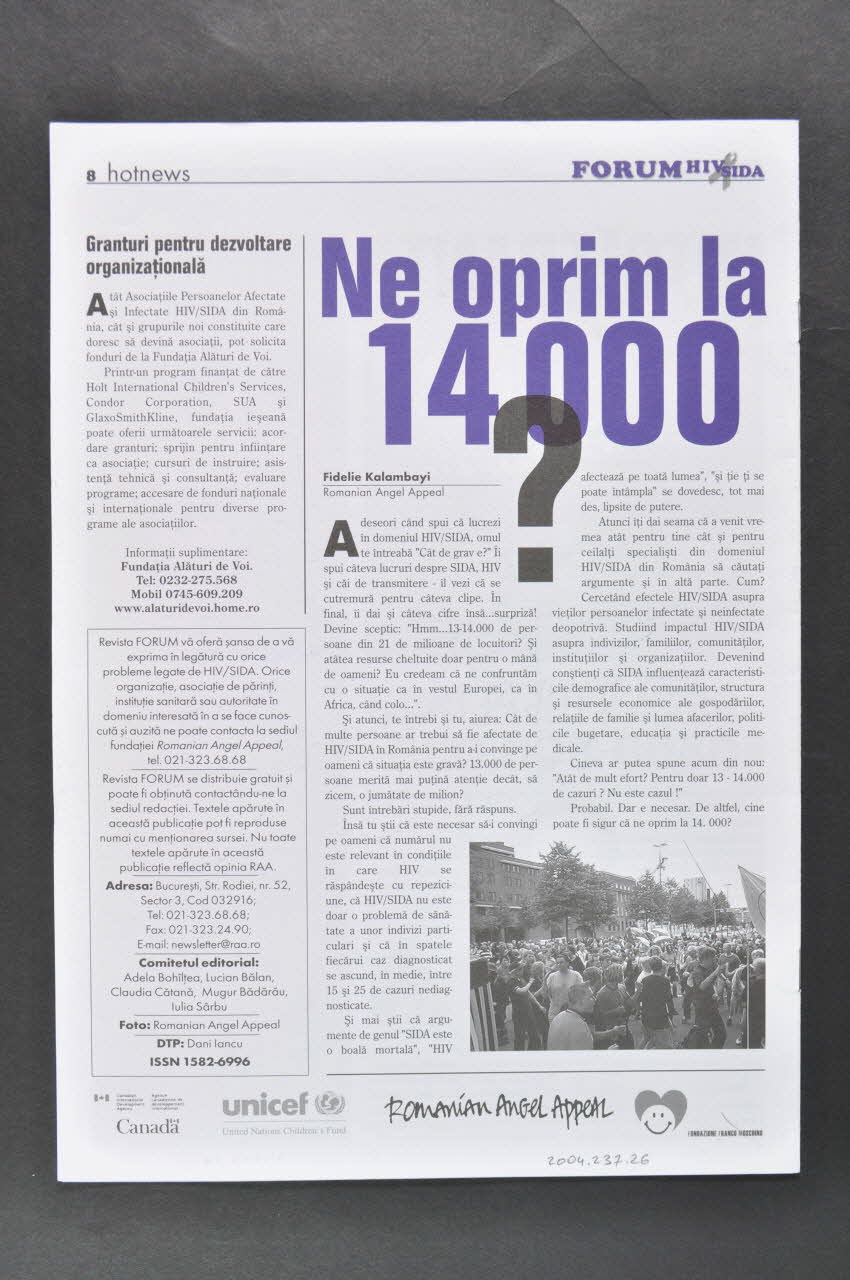 revue, Forum HIV Sida n° 46, septembre 2003 : "Invitatie la noi acasa" (Invitez-nous chez vous ??)