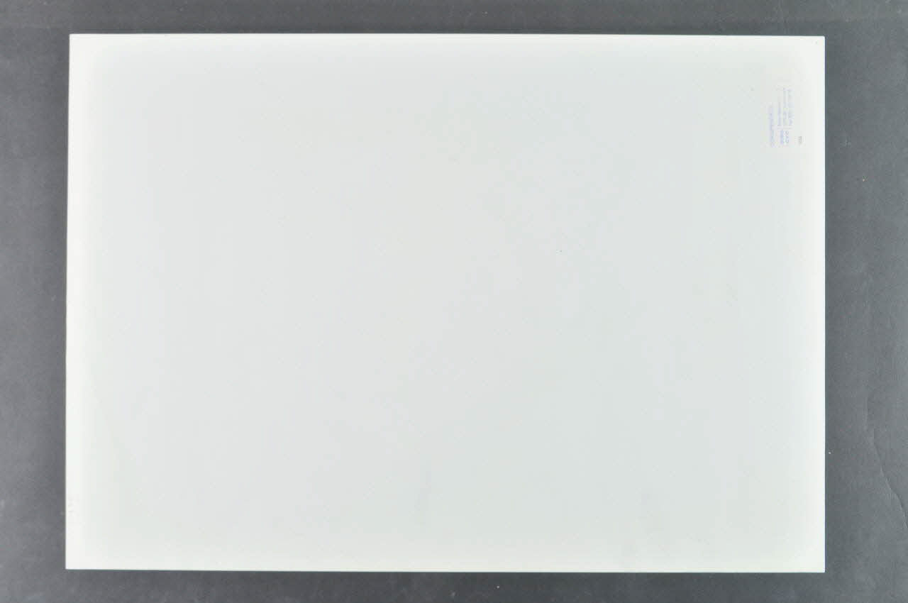 Affiche en épais papier glacé, rectangulaire, tenue dans le sens horizontal, à fond blanc.