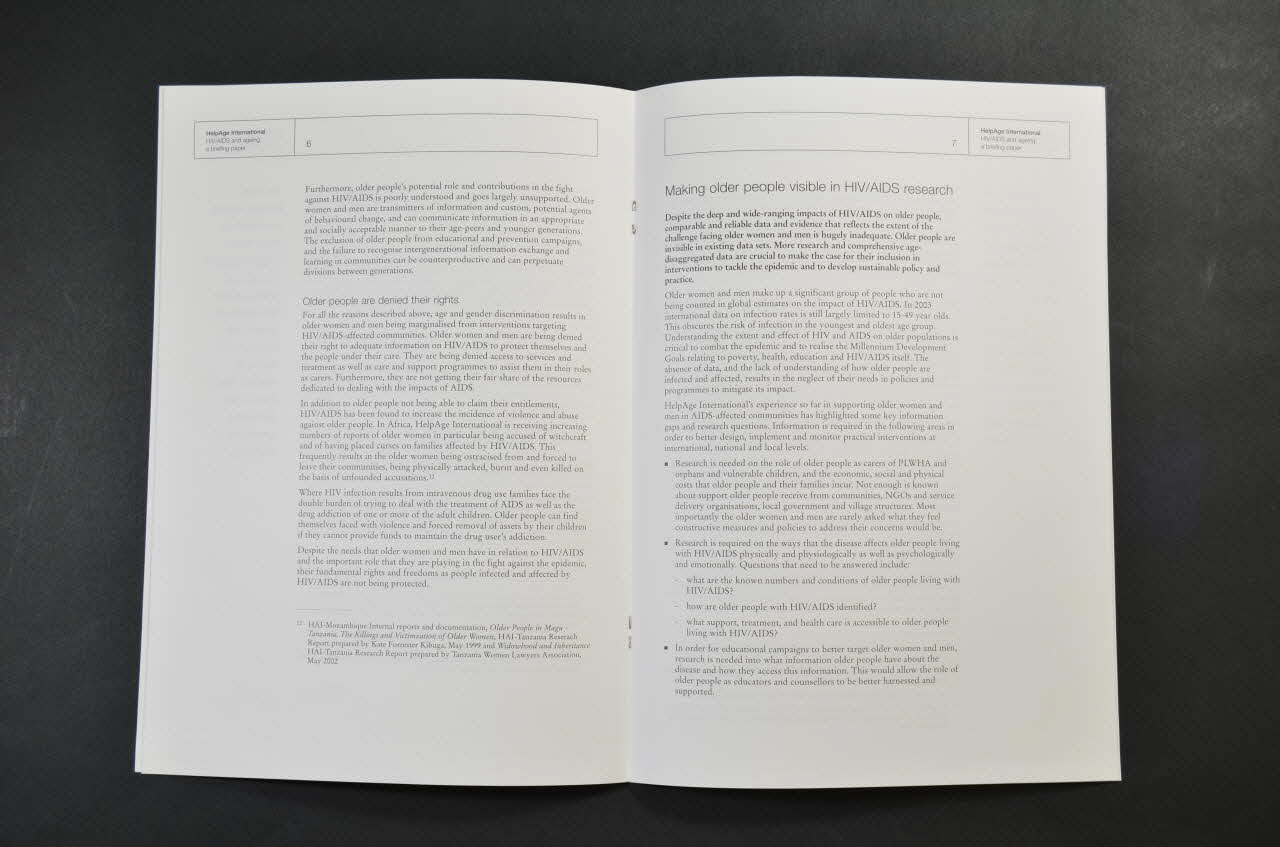 HIV/AIDS and ageing // The impact of HIV/AIDS on older people // Making older people visible in HIV/AIDS research // An agenda for action // Selected resources (au fil des pages)Décor