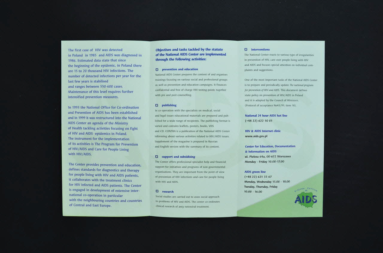 Dépliant, "National AIDS Center" (Centre national du sida)