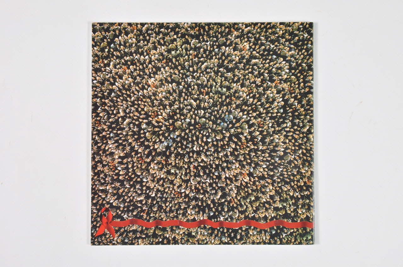 La couverture comporte, en fond, une photographie d'une foule vue d'en haut dans des tons de brun. Le titre est inscrit en blanc sur des bandeaux noirs dans le coin supérieur droit. Tout en bas, à droite, un ruban rouge se prolonge sur le bas de la largeur de la couverture. Le dos de la brochure comporte le même fond que la couverture avec un ruban rouge en bas mais sans inscription. L'intérieur est constitué d'un fond blanc avec un texte imprimé en noir sur deux ou trois colonnes. Les numéros des chapitres et les sous-titres sont inscrits en rouge. De nombreuses pages comportent des petites photographies couleur en lien avec le sida.Inscriptions