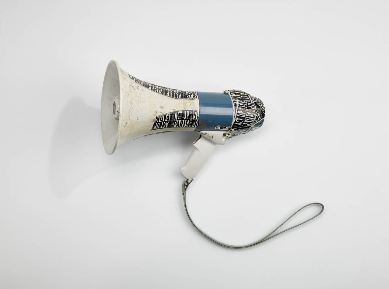 séropos, la france vous préfère morts. (dans le pavillon du porte-voix. L'inscription encercle le triangle rose.), à l'intérieurDécor
