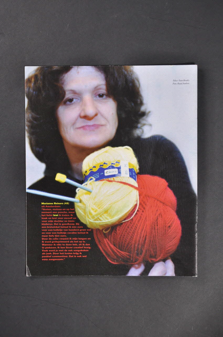 Au recto le fond est une photo, en couleur, représentant un homme souriant, tenant des carottes. En haut, dans un ovale jaune cerclé de blanc et noir, est inscrit le nom de la revue en capitales puis italiques noires. En dessous figure un sous titre. Au milieu il y a quatre titres en capitales blanches, accompagnés de quatre sous titres en jaune. A l'intérieur, le fond est blanc, avec des textes en noir, accompagnés de nombreuses photos, en noir et blanc, représentant des personnes. Au milieu, la double page est imprimée en couleur. Au verso, le fond est une photo, en couleur, d'une femme tenant en avant deux pelottes de laine, une jaune et une rouge. En bas à gauche figure un texte en petites lettres jaunes et rouges.Inscriptions