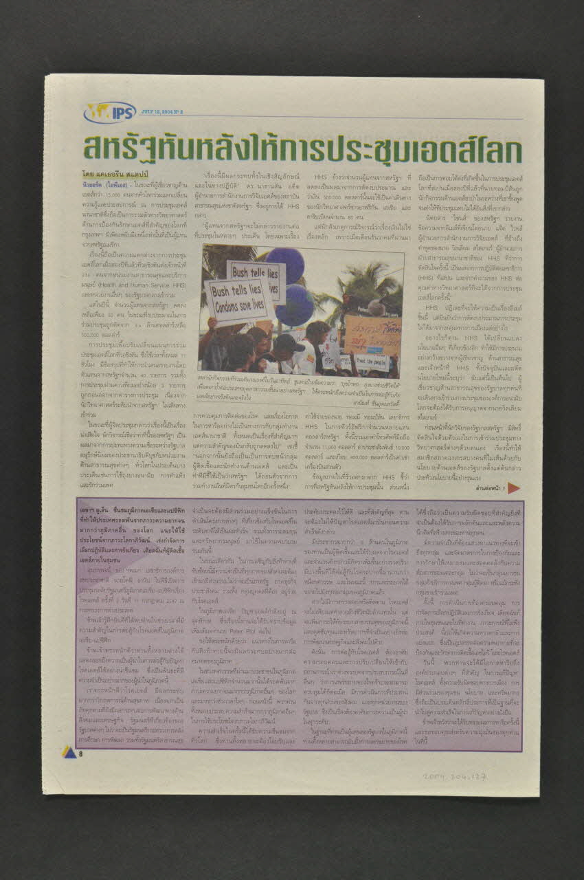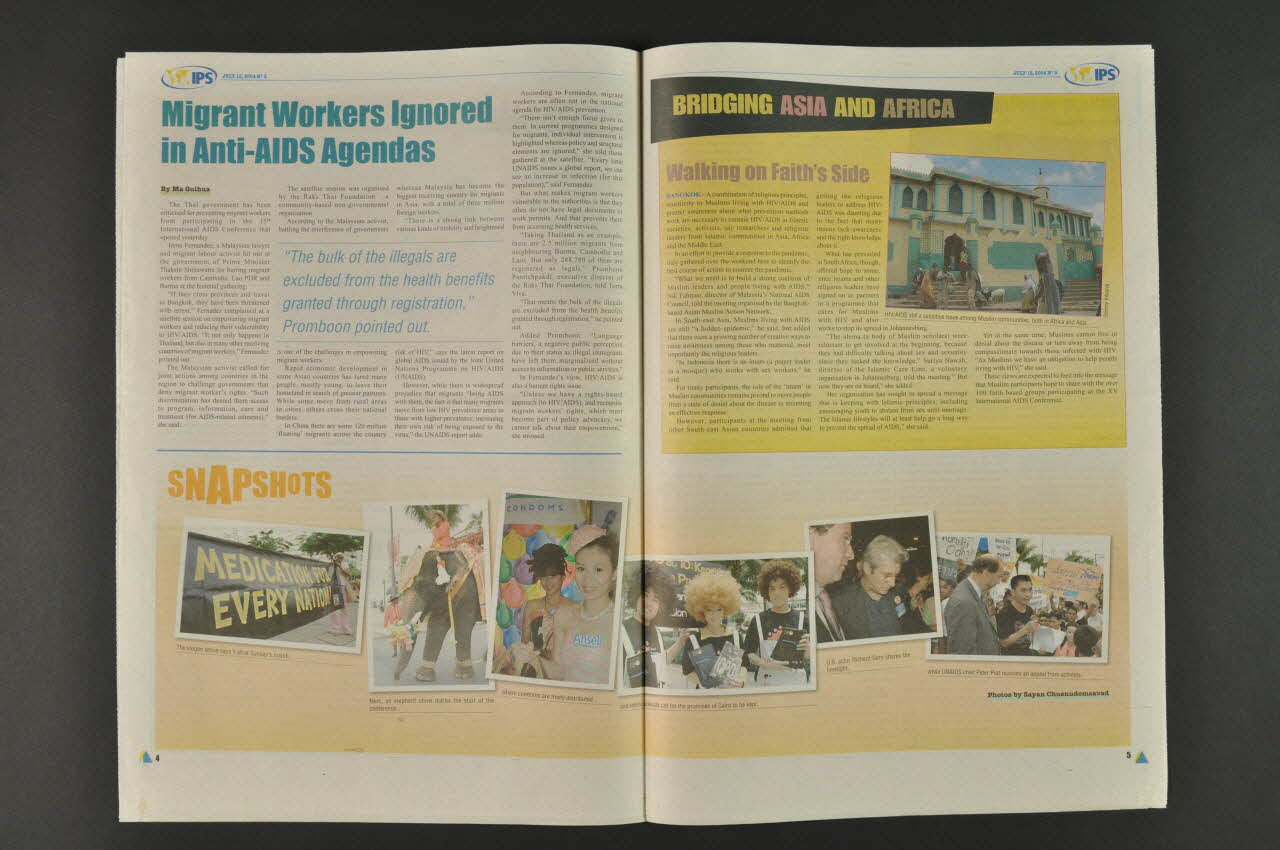 p.3 Article sur le "Village global" créé pour ceux ne pouvant pas payer le droit d'entrée. mais le droit d'entrée élevé exclue bon nombre de ceux qui vinent avec le VIH/sida.