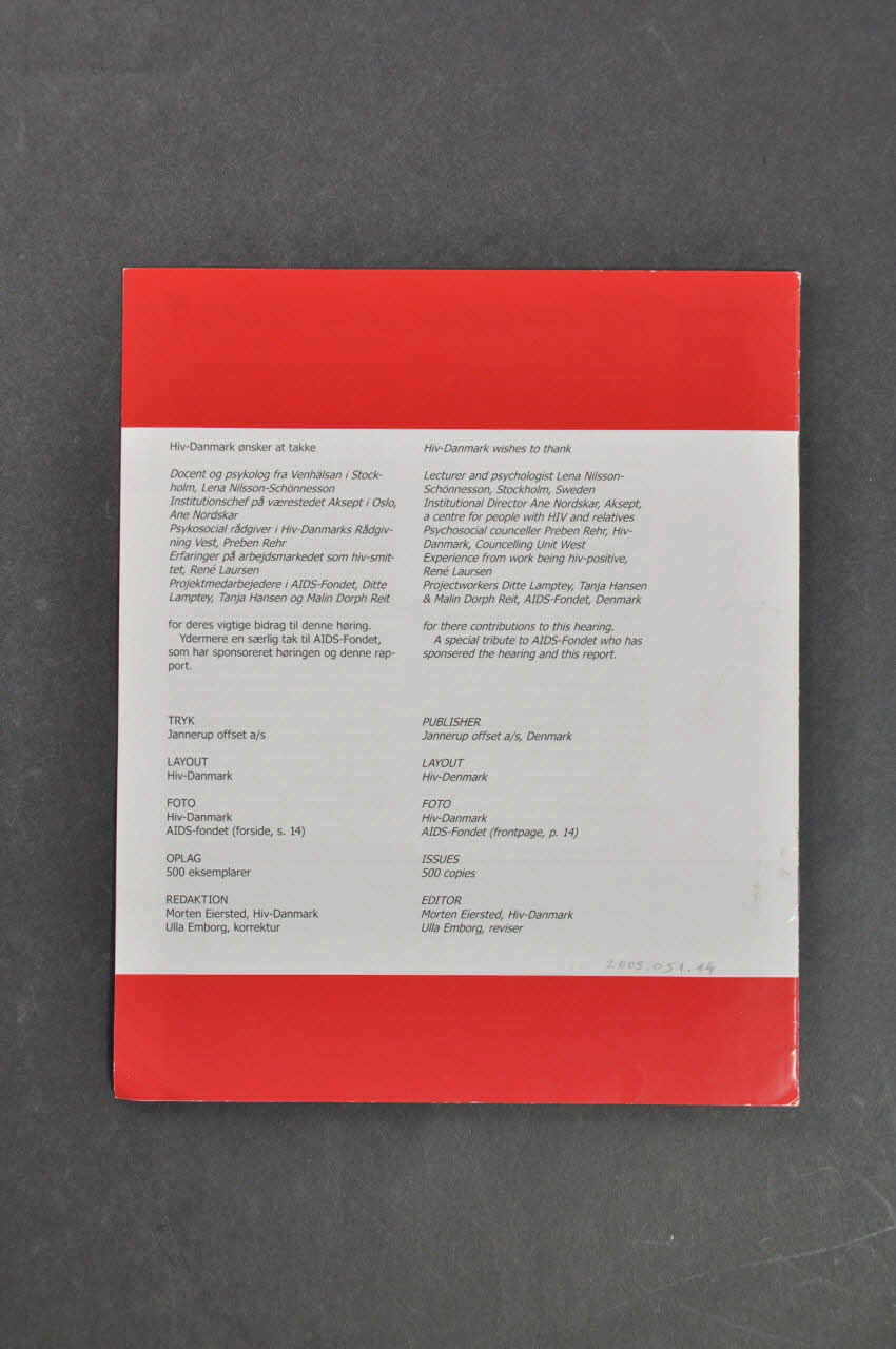 HIV // DANMARK (Sur le bandeau supérieur rouge de la couverture, à gauche), sur la couvertureSommaire