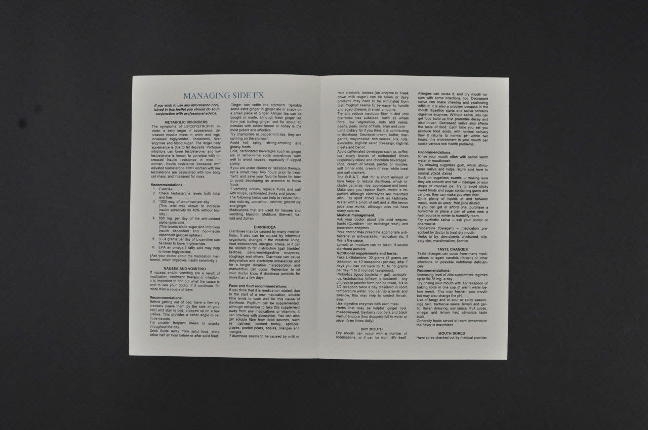 Dépliant, "Managing side Fx" (Gestion des effets secondaires)