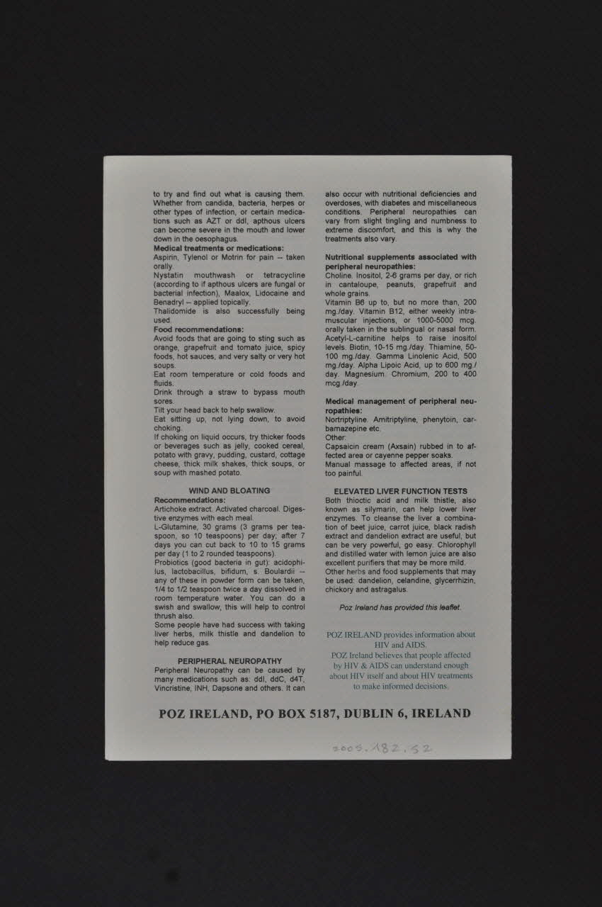 POZ IRELAND (Imprimé en capitales noires dans le bas), versoSommaire