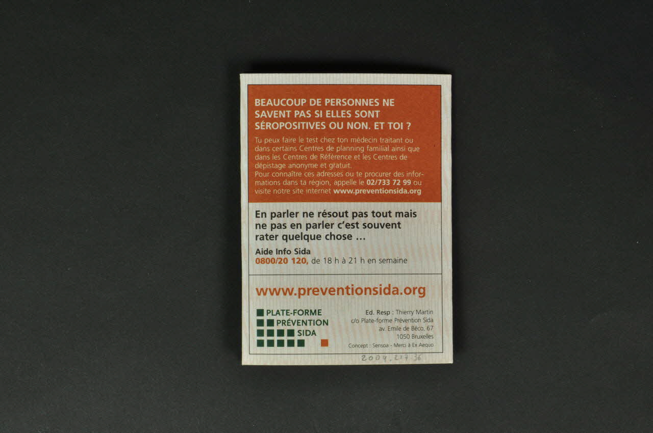 PLATE-FORME // PREVENTION // SIDA // // Ministère de la Communauté française (Deux logos dans les coins inférieurs. Celui de gauche se retrouve au dos.), en hautDécor