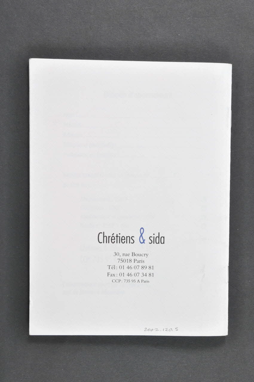 Chrétiens & sida // carnet de route, sur la couvertureNom d'association, adresse