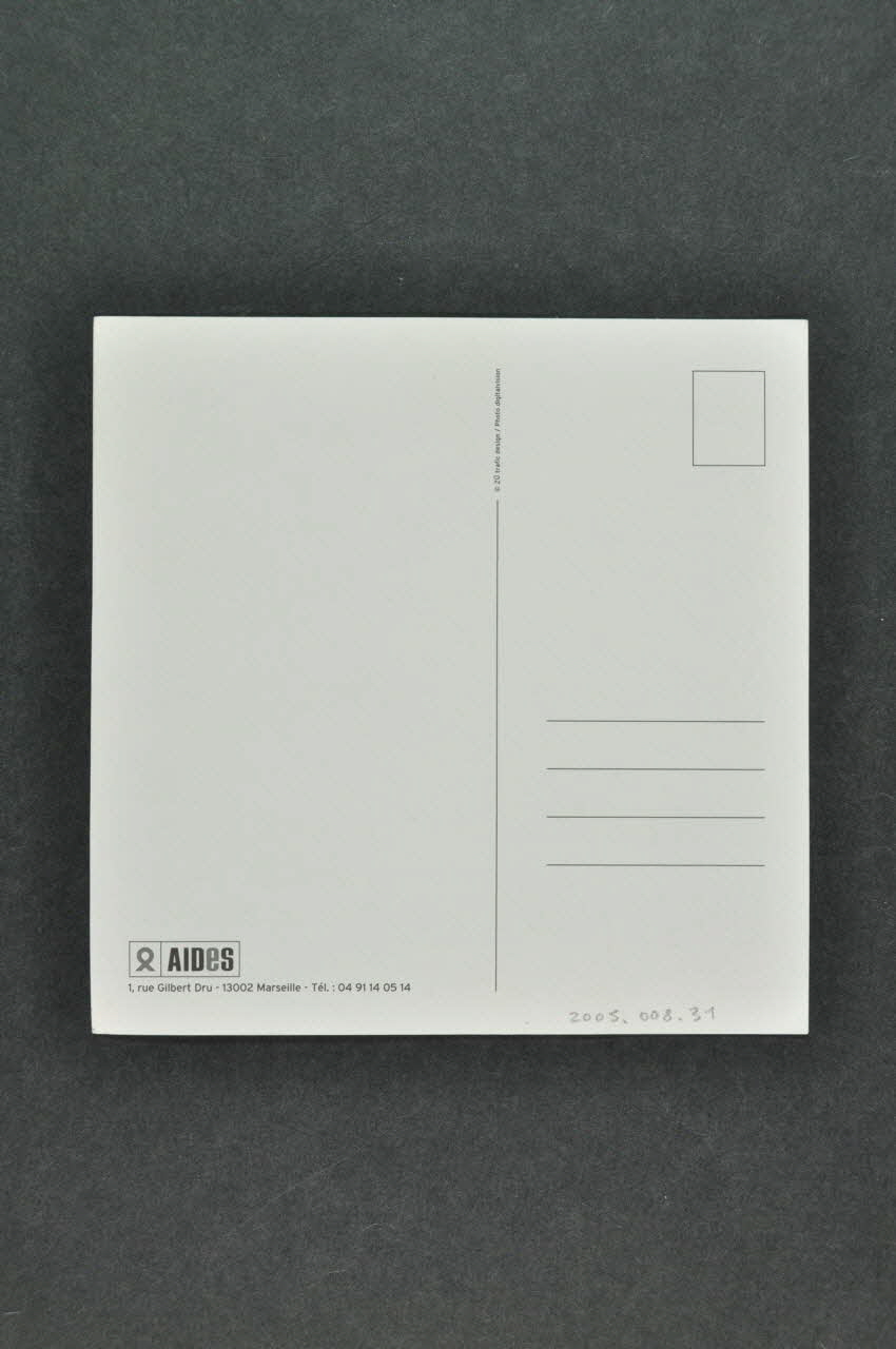 Sida Info Service // 0 800 840 800 (Texte imprimé en caractères gras noirs et précédé d'un ruban rouge. Un numéro vert est indiqué juste en-dessous. L'ensemble est situé en bas à droite.), rectoNuméro, adresse