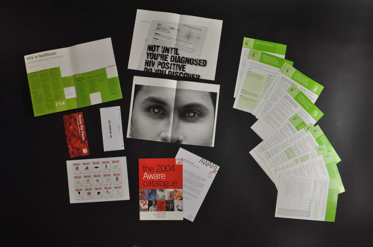 .7 : Catalogue :"The 2004 Aware catalogue. Promoting HIV and AIDS awareness" (aussi en 2004.213.11), catalogue proposant les produits dérivés. A l'intérieur est glissé une lettre dactylographiée.