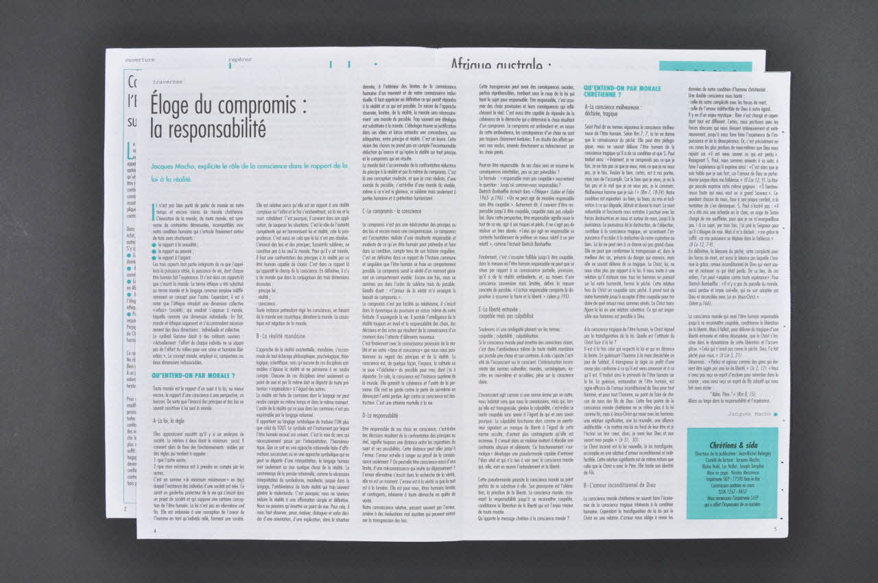 journal, Chrétiens et sida : Numéro 24 : Comme dans l'Evangile, passons sur une autre rive / Eloge du compromis : la responsabilité
