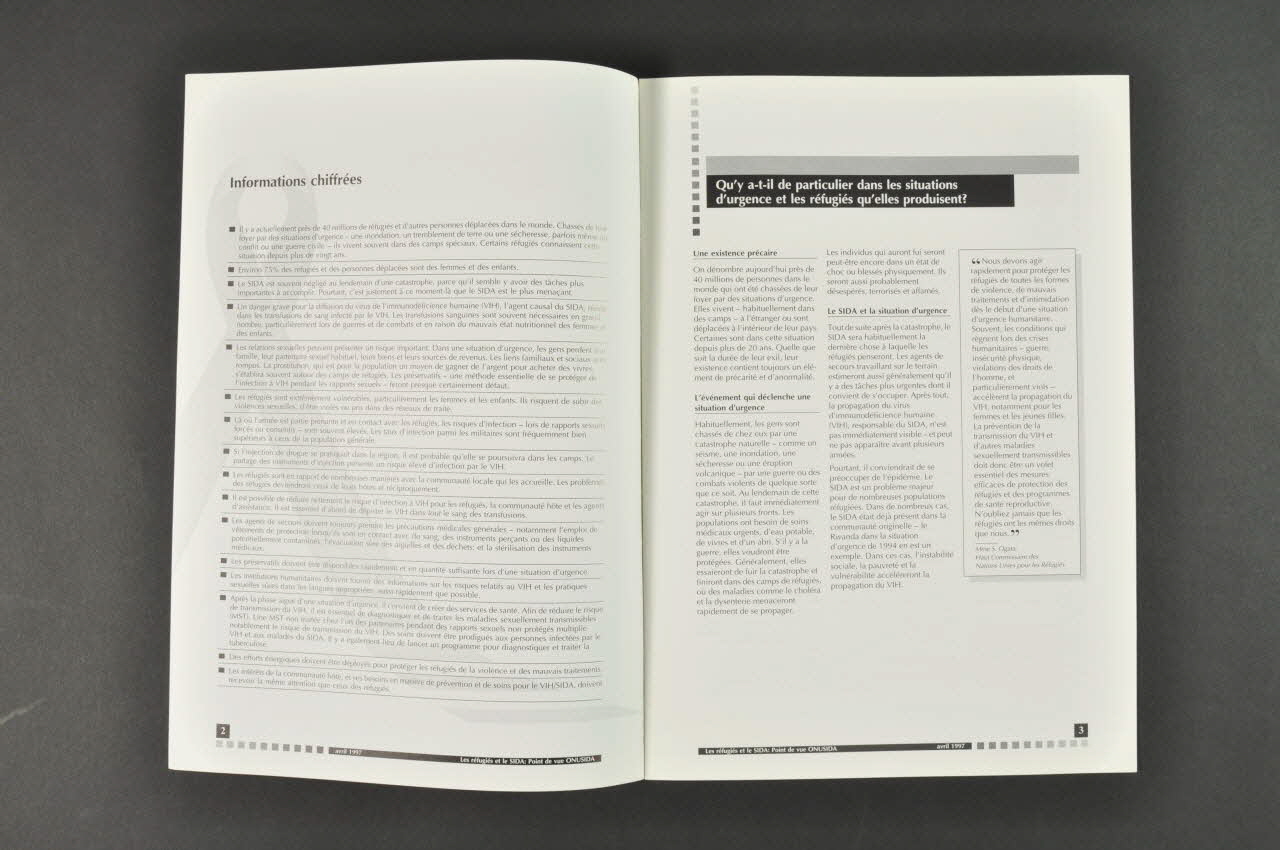 - Qu'y a-t-il de particulier dans les situations d'urgence et les réfugiés qu'elles produisent ? : Une existence précaire / L'événement qui déclenche une situation d'urgence / Le Sida et la situation d'urgence