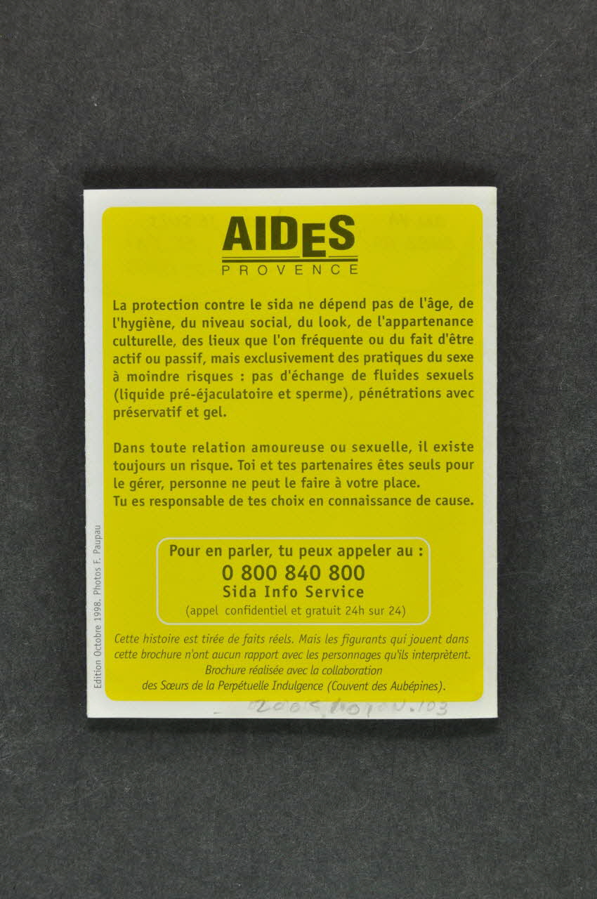 AIDES // PROVENCE (inscription noir sur fond jaune au milieu en haut), versoNuméro