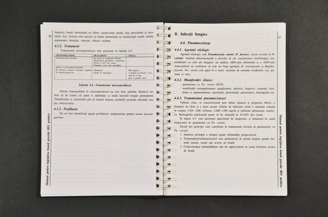 CUPRINS // INTRODUCERE 3 // Capitolul I: GENERALITATI 4 // [...] // Capitolul II: INFECTIA HIV SI SARCINA 22 // [...] // Capitolul III: MANAGEMENTUL GRAVIDEI INFECTATE HIV 41 // [...] // Capitolul IV: MANAGEMENTUL PRINCIPALELOR INFECTII OPORTUNISTE 77 // [...] // BIBLIOGRAFIE 161 (Les pages 1 et deux, en caractères noirs sur fond blanc), à l'intérieurTitre