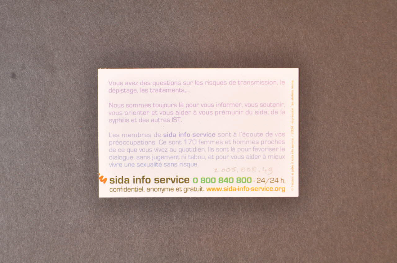 sida info service 0800 840 800 - 24/24h // confidentiel, anonyme et gratuit. www.sida-info-service.org (en bas), versoDécor