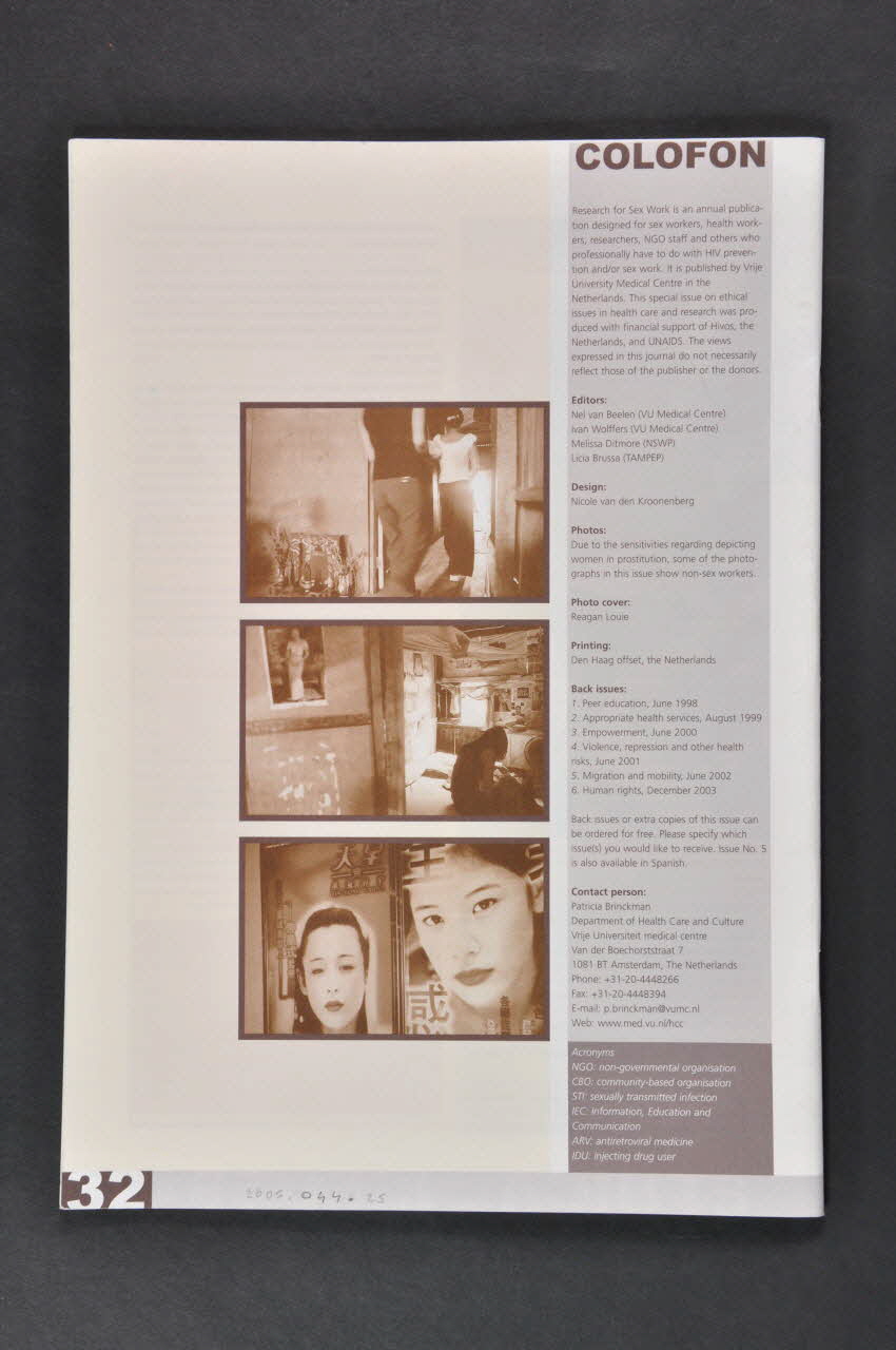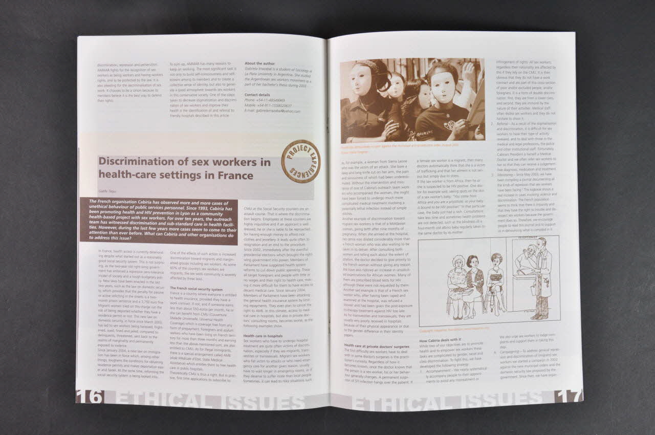 3 Ethical dilemmas in sex work research // // 6 Alternate ethics, or: Telling lies to researchers // // 8 Collaborative research-community partnerships: The CAL-PEP case // // 9 From subjects to partners: Experience of a project in Rio de Janeiro, Brazil // // 10 The Tenofovir trial controversy in Cambodia. Can a trial be considered ethical if there is no long-term post-trial care? // // 12 Hijras in sex work face discrimination in the Indian health-care system // // 14 Argentinean sex workers taking care of themselves: the experience of AMMAR // // 16 Discrimination of sex workers in health-care settings in France // // 18 Health-care projects and the risk of NGO goal displacement // // 20 Female sex workers in Hong Kong: moving beyond sexual health // // 23 Expanding HIV treatment options for female sex workers in Vancouver's Downtown Eastside // // 26 Social evils and sex work in Vietnam // // 29 Mandatory testing: The fear that feeds the falsehood (sommaire p.2), à l'intérieurDécor