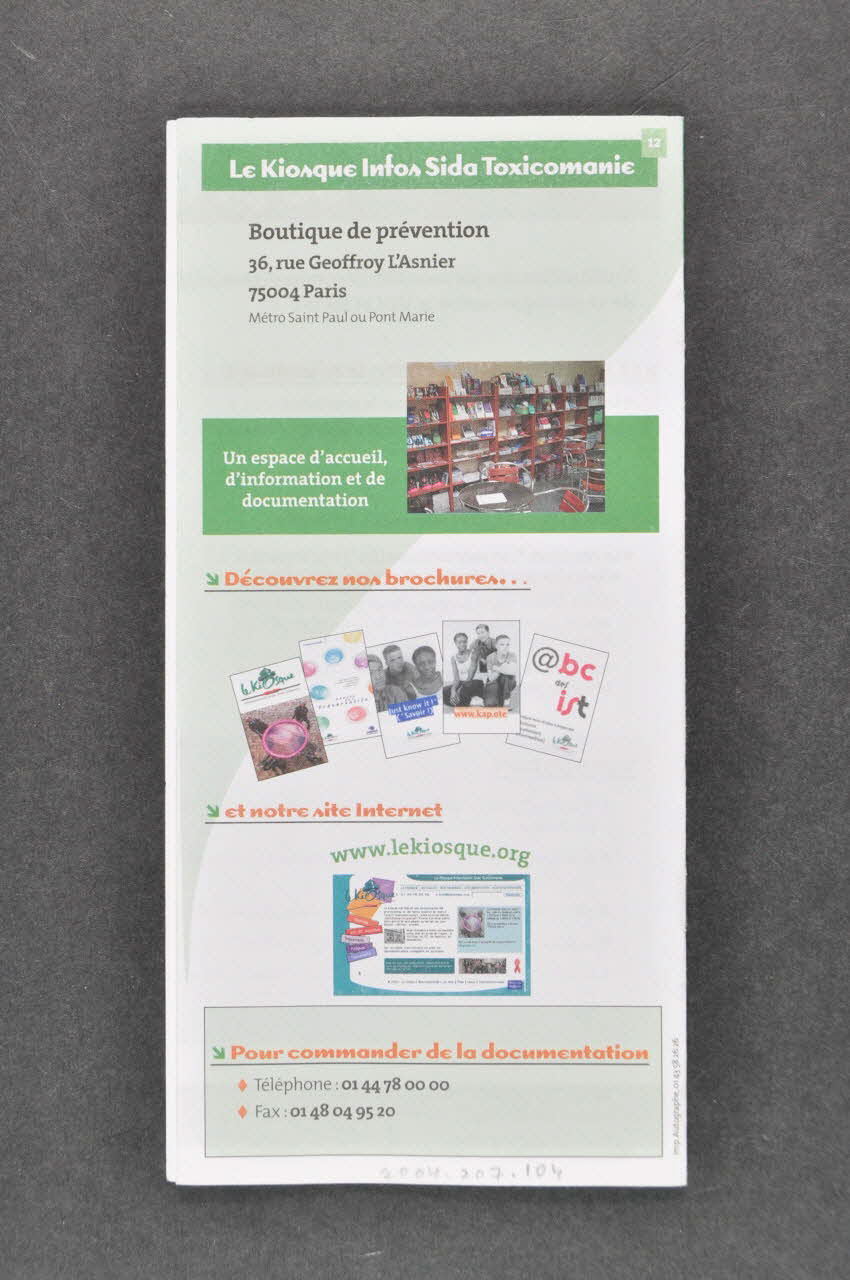 le kiosque // INFORMATION SIDA TOXICOMANIE (Centré le long de la bordure supérieure), rectoDécor