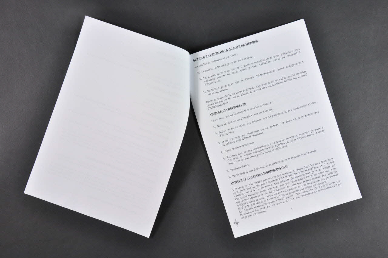 "Association le Tipi. Ensemble contre l'exclusion, séropositifs ou non, partageons, créons…" (sur la couverture, article 1 : Titre de l'association)Sommaire