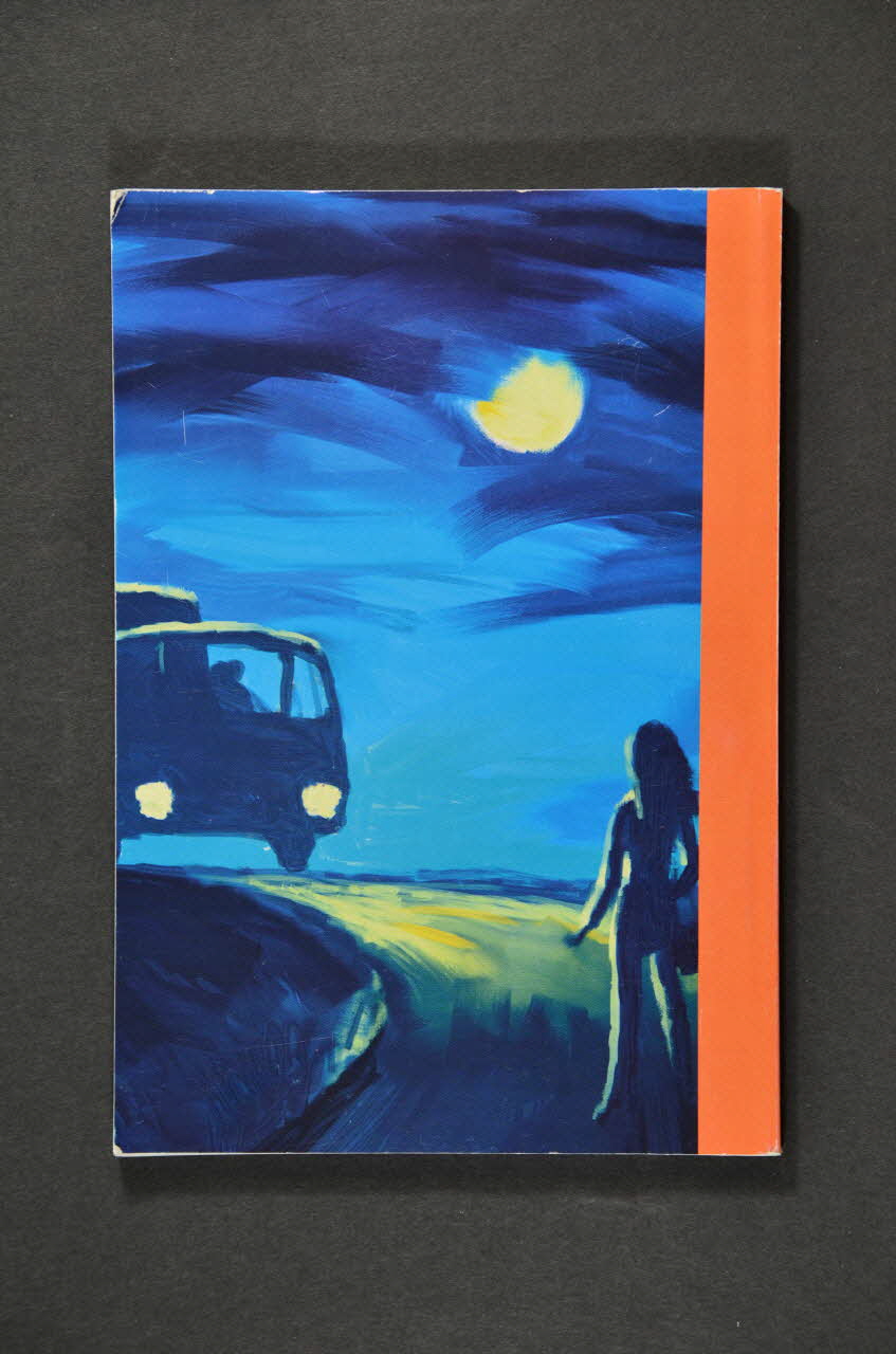 La couverture est en papier glacé cartonné. Elle se compose à gauche d'une bande verticale orange, à droite d'un détail du dessin du verso: la lune dans un ciel bleu. Dans la partie supérieure, le titre est en capitales blanches dans un cadre orange à fond bleu. Dans l'angle inférieur gauche, sur la bande orange, il y a un texte en caractères cyrilliques noirs. Le verso se compose à droite de la bande orange et à gauche du dessin: une femme sur une route de nuit face à un camion feux allumés. A l'intérieur, le texte est en caractères cyrilliques noirs sur fond blanc.Inscriptions