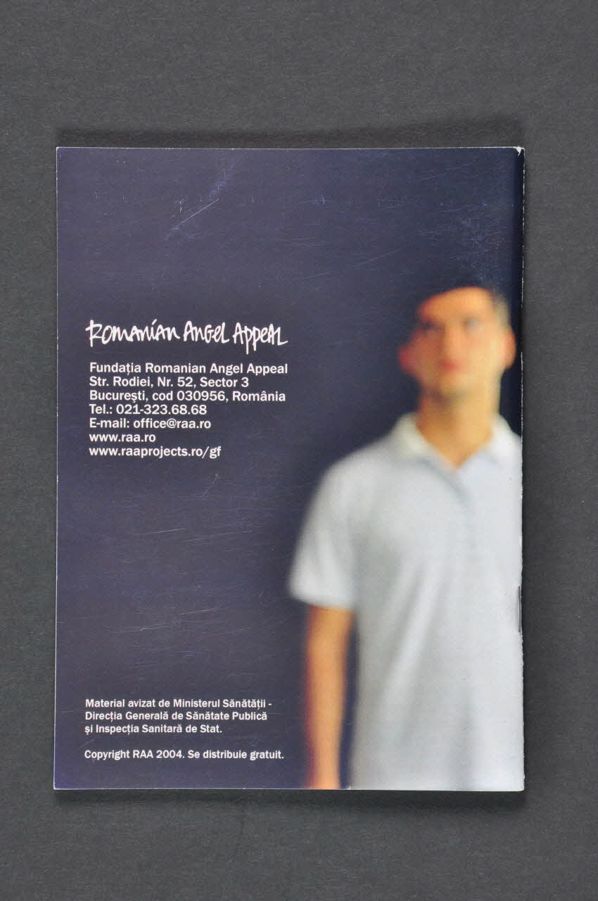 Il s'agit d'une petite brochure en roumain, elle est en papier glacé épais, a 52 pages numérotées reliées entre elles par deux agrafes. Sur la couverture à fond noir on peut voir la photo d'un jeune homme qui se regarde dans une glace où on le voit de face. En haut, à droite, en capitales rouges et blanches il y a le titre, sur le côté gauche le sous titre et en bas le logo de l'association.