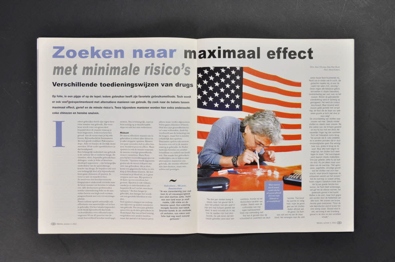 Résumé: - p.4 Cocaïne en seks. Snoepen mag, schrokken niet. (signalé en couverture) (résumé dans le sommaire) - p.6 Nieuws : Tentoonstelling prostitutie (résumé dans le sommaire) / Rouwrituelen - p.9 Dagboek : (Journal de Brigitte) "Wartaal en foetushouding" - p.10 "Met bidden alleen red je het niet" Afkicken in Suriname (résumé dans le sommaire) -p.12 Zoeken naar maximal effect met minimale risico's. Verschillende toedieningswijzen drugs (résumé dans le sommaire) (signalé et photo en couverture) - p.16 Acupunctuur : hulp middel bij afkicken ? (résumé dans le sommaire) - p.18 Portret van Anjes,. "Ik wil een goede moeder zijn"(résumé dans le sommaire) (mère avec son bébé) - p.20 Gezondheidsnieuws : Hiv-remmers ook tegen hepatitis B - p.22 Stadsportret : usagers de drogues à Roermond. - p.23 Puzzel : mots croisés - p.24 Persoonlijk : Photo et présentation de Judy Mietzner usagère de drogue
