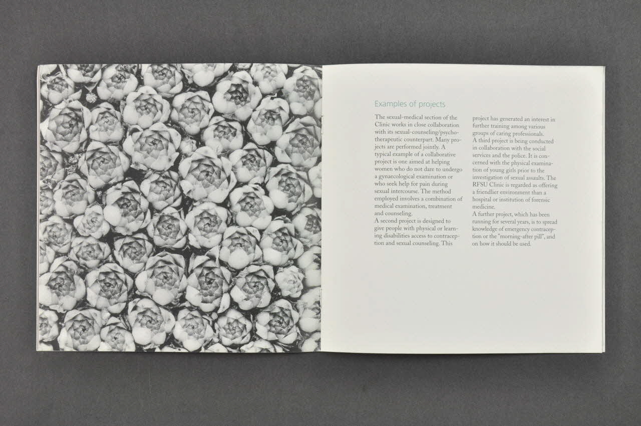 Contents // // The RFSU Clinic - a unit in its own right // Three branches of activities // Contraception counseling and prevention of STDs (sexually transmitted diseases) // Some statistics // Examples of projects // Sexual counseling and psychotherapy // Approach // Statistics, projects // Outreach and education (en première page, en vert), à l'intérieurDate