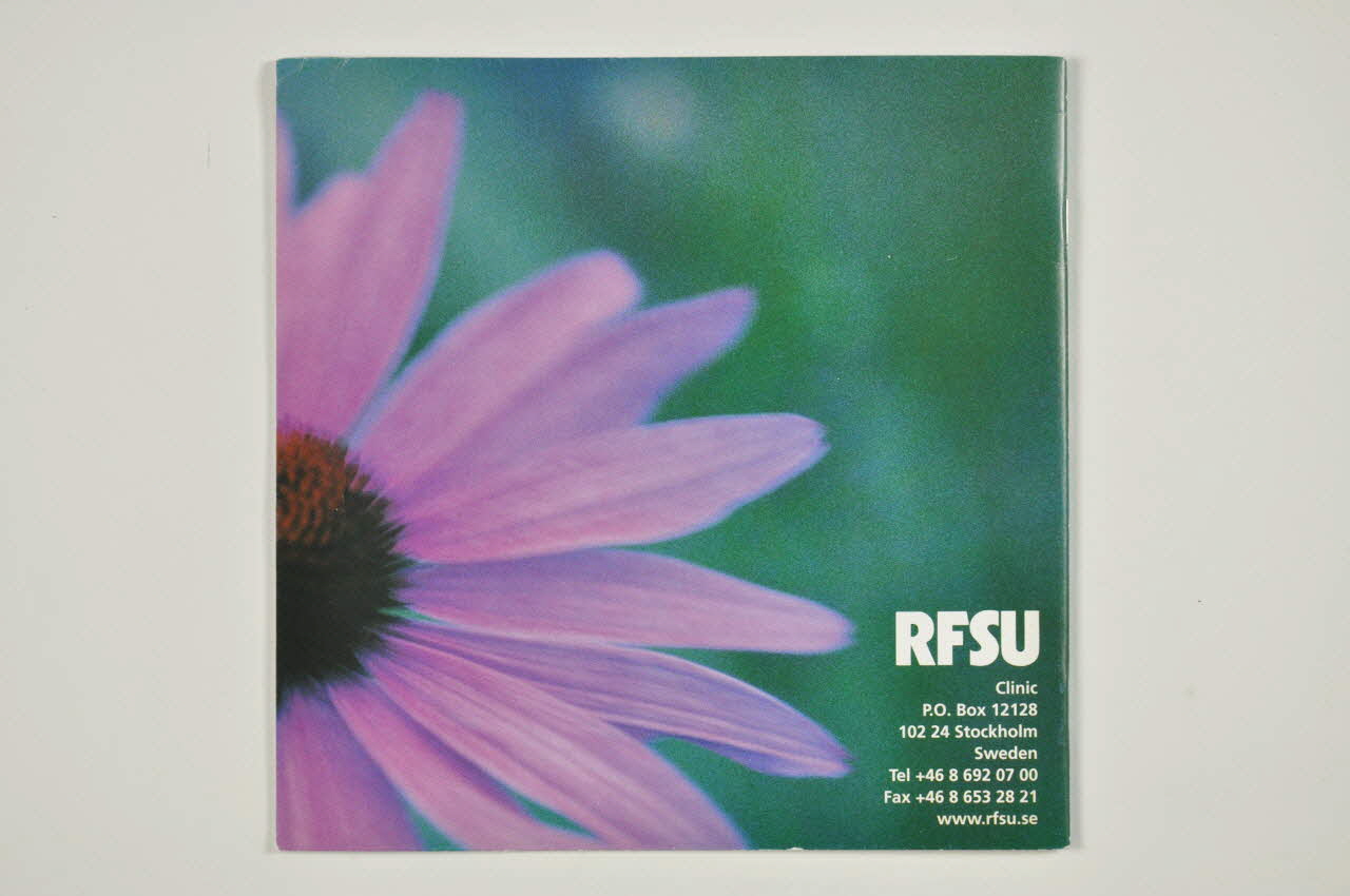 RFSU // Clinic // P.O. Box 12128 // 102 24 Stockholm // Sweden // (...) // www.rfsu.se (angle inférieur droit de l'arrière de la couverture), en basDécor