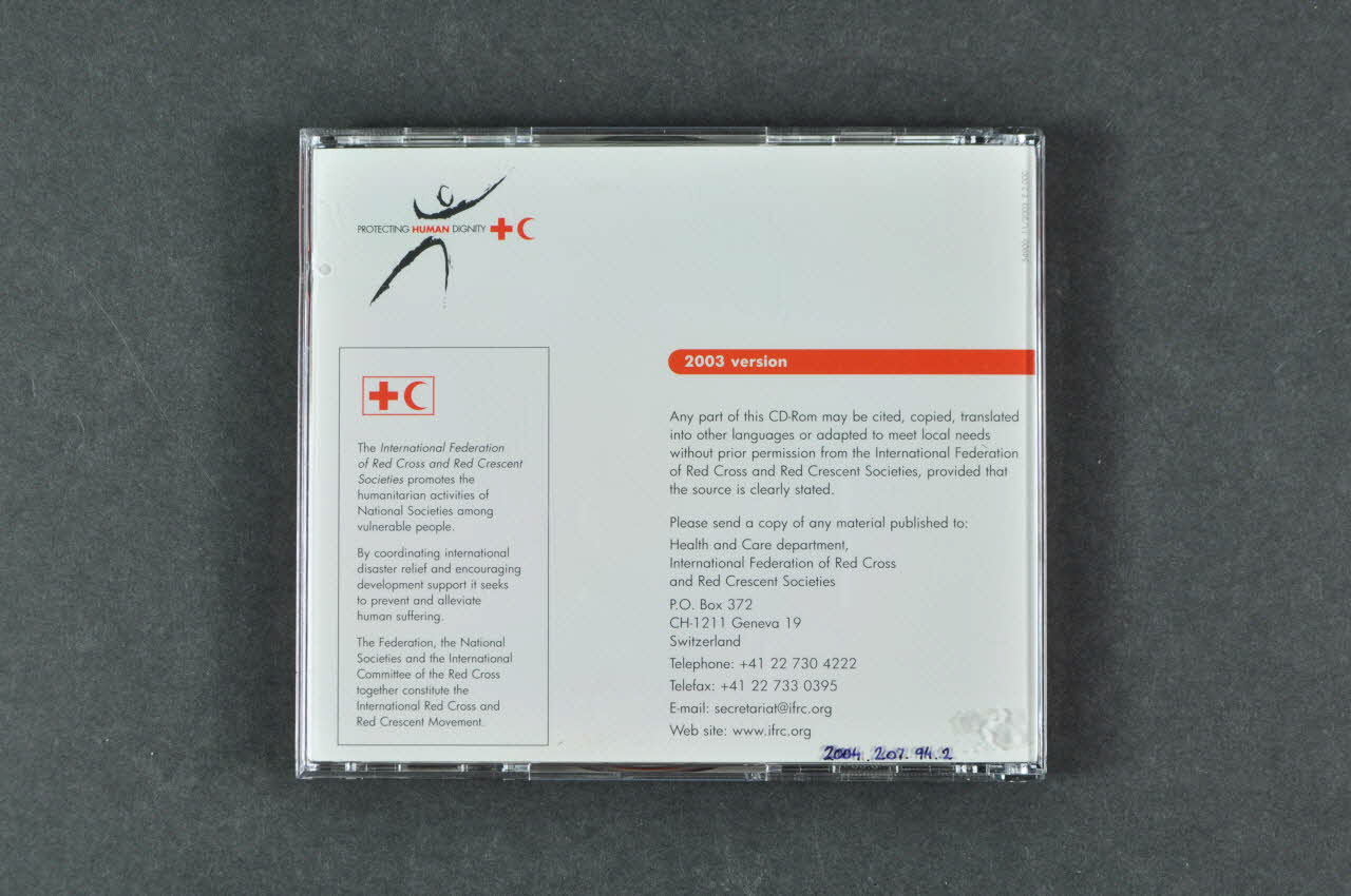 International Federation // of Red Cross and Red Crescent Societies (bandeau inférieur rouge), en basDate
