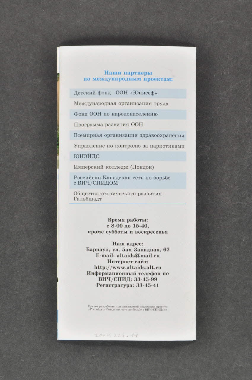 Ce dépliant est d'origine russe, il présente un centre.