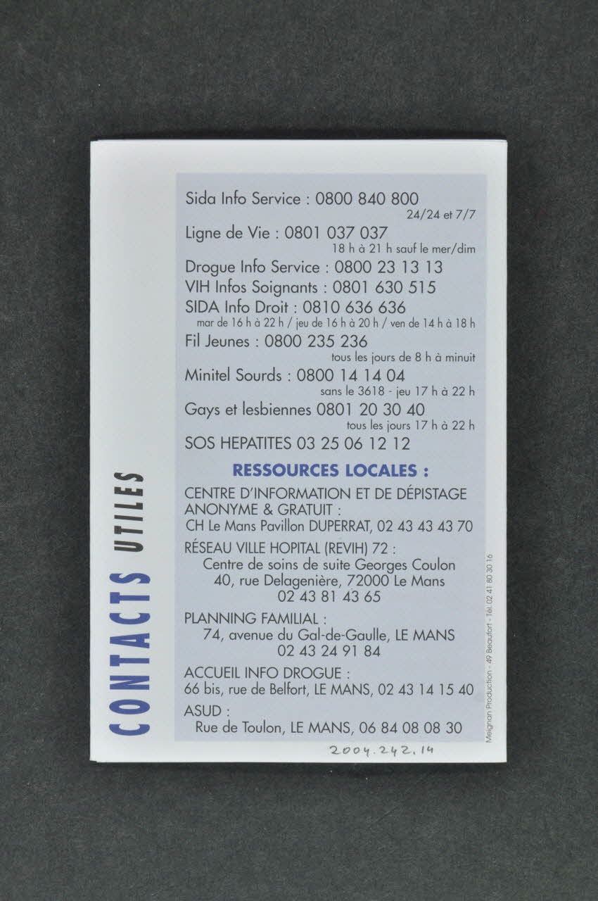 www.aides.org (sur le sixième feuillet), à l'intérieur24 bis, rue du Bourg Belé // 72 000 LE MANS // Tél. 02 43 23 96 71 // Fax 02 43 77 18 53 (en bas), rectoTitre
