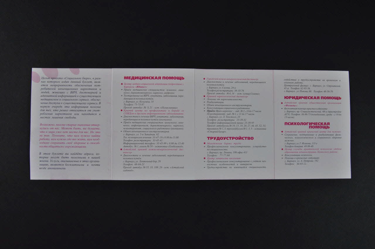 Dépliant, ligne téléphonique, adresses