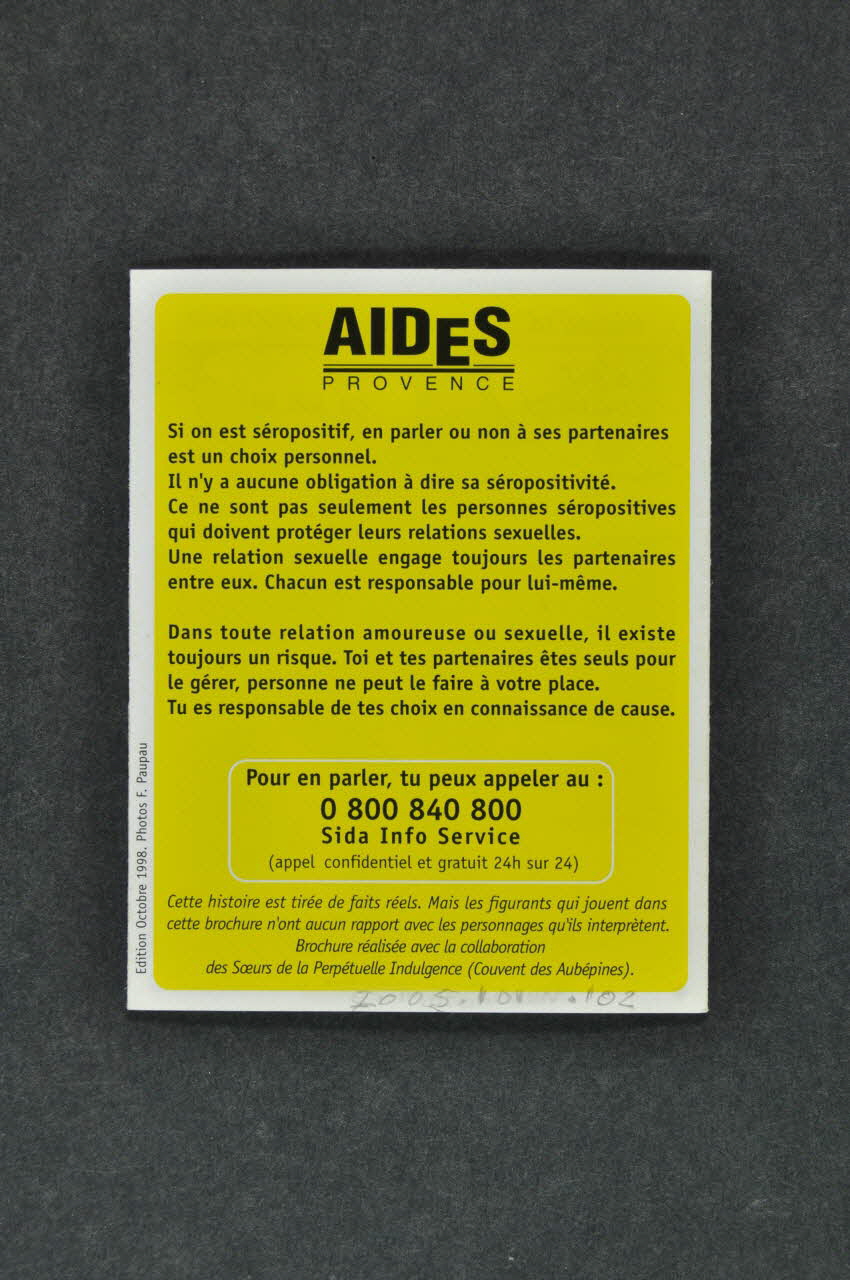 AIDES // PROVENCE (inscription en noir sur fond jaune en haut), versoNuméro