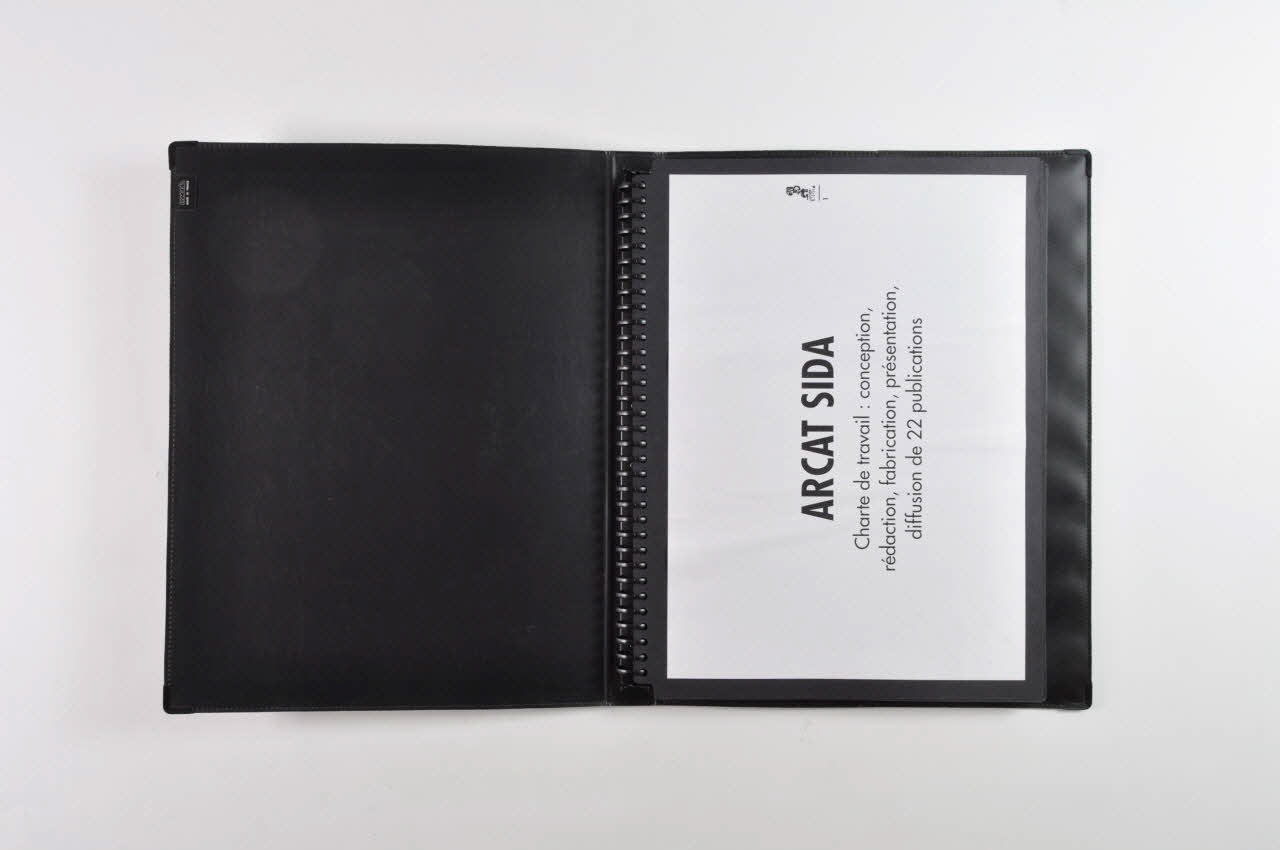 - Les prescriptions de Crayon Noir : bilan de l'existant (mauvaise visibilité de ARCAT Sida) / Rendre ARCAT visible (le logo, les collections (système graphique différentiant les collections en Arcat Professionnels / Arcat Références / Arcat Prévention / Arcat Patients), la mise en page intérieure (mise en cohérence des différentes brochures pour plus de clarté), la question de l'iconographie (réticence de l'association), la ligne rédactionnelle (examen et critique des brochures existantes), des projets nouveaux (publics cibles comme les homosexuels et les toxicomanes), accroître les modes de diffusion
