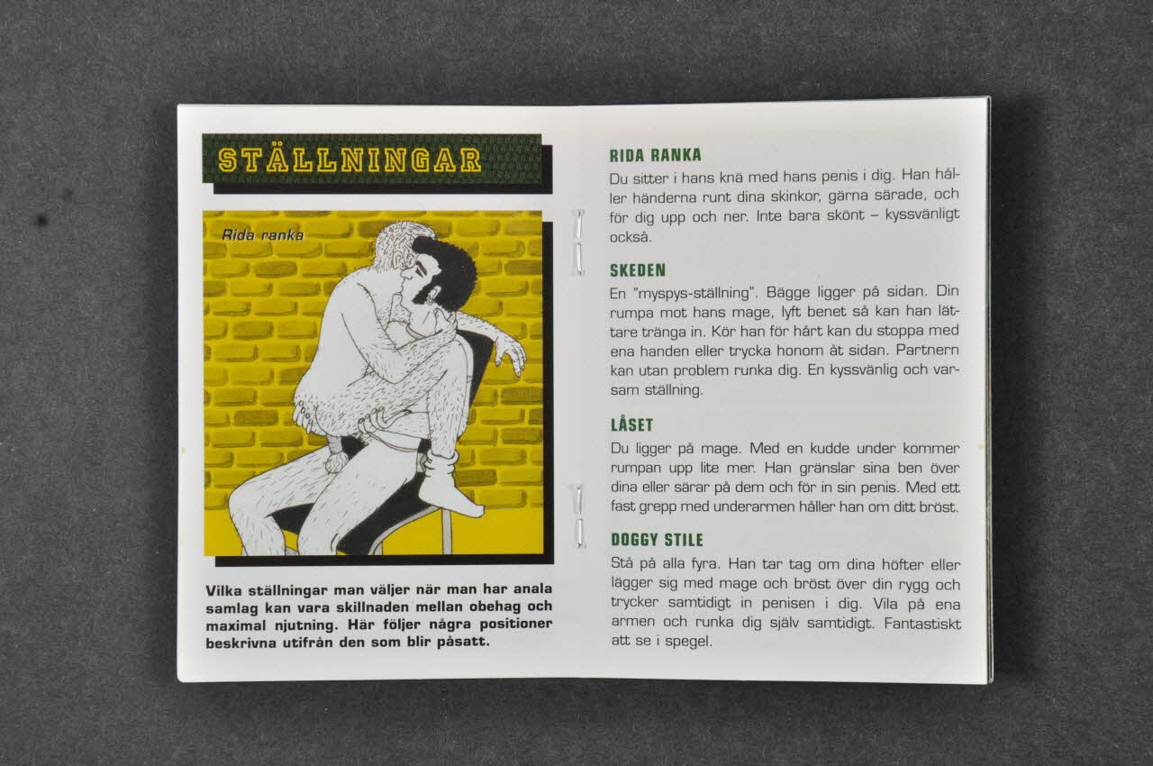 DIN GUIDE TILL // ANALSEX - FÖR ÖKAD // NJUTNING OCH STÖRRE // SÄKERHET ! (inscription en noir sur la pancarte jaune au centre), sur la couvertureSommaire