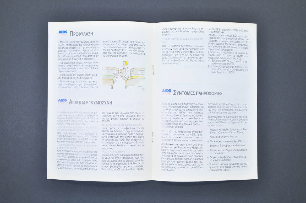 Il s'agit d'une petite revue au format A5 entièrement rédigée en grec. Elle est en papier glacé, a 12 pages non numérotées reliées grâce à deux agrafes. Sur la couverture à fond gris-vert on peut voir en haut la croix rouge avec en dessous son nom en grec. En dessous, entre deux traits blancs, il y a le titre en grandes capitales bleues et roses puis en bleu le nom des auteurs et en bas, en bleu le lieu et la date de parution.