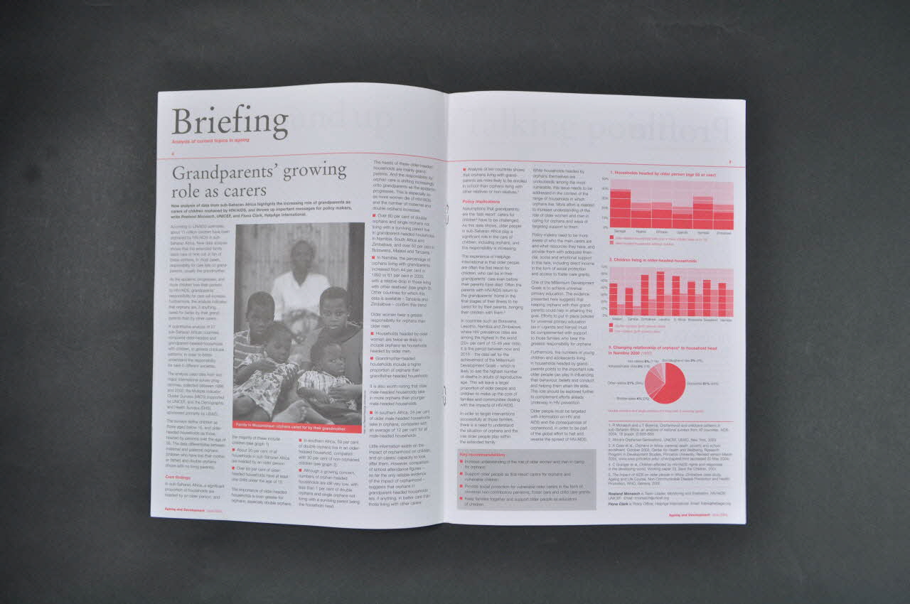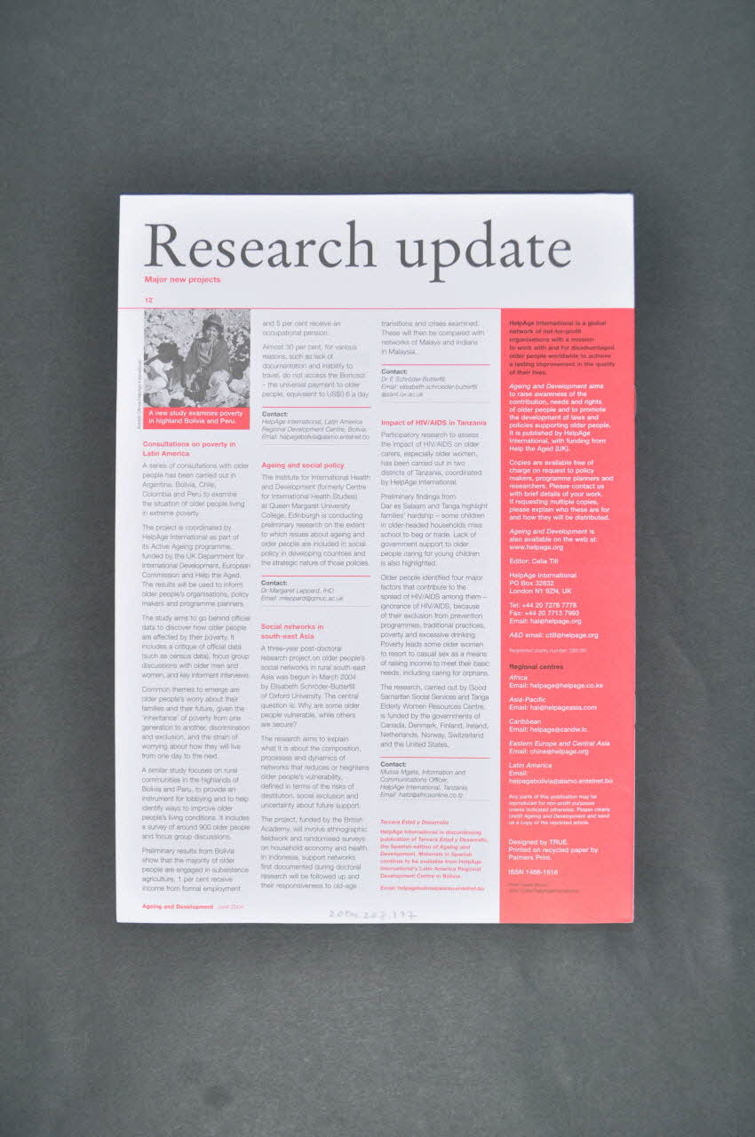 "Ageing and development", n° 16, june 2004 : "HIV/AIDS who cares ?" // // inside... // 2 News // 6 Briefing // 8 Profile // 9 Talking point // 10 Ressources // 12 Research update (sur la première de couverture)Adresse