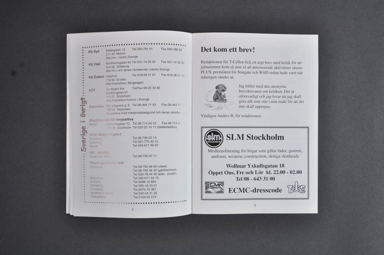 t-cellen // posithiva gruppens medlemstidning (sur la couverture, en lettres blanches cerclées de rouge et lettres rouges), en hautTitre