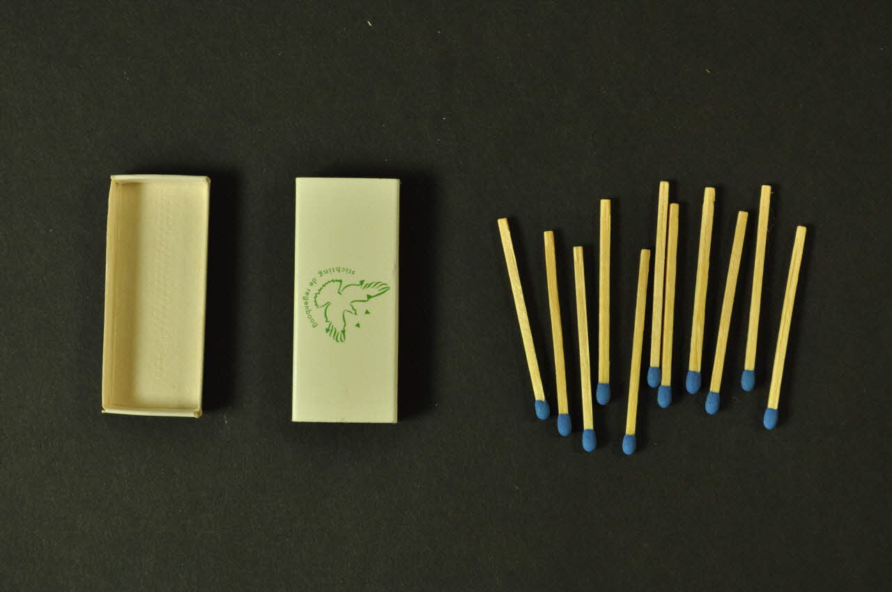 Les allumettes sont composées d'une tige en bois de section rectangulaire, avec une extrémité bleue à gratter sur la boîte.Décor