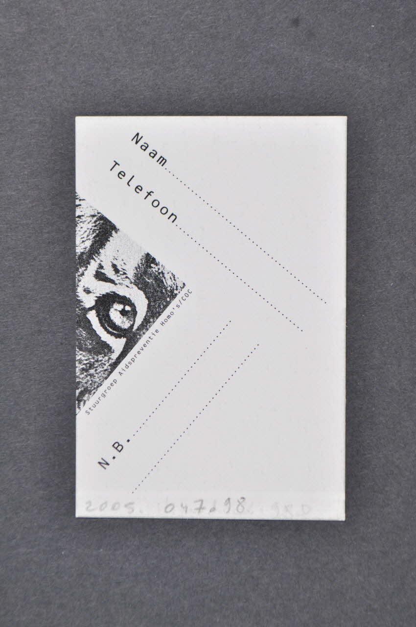 Au dos, le fond est blanc. On trouve des emplacements pour écrire son nom et son numéro de téléphone. Sur le côté se trouve le nom de l'association qui a fait cette carte.