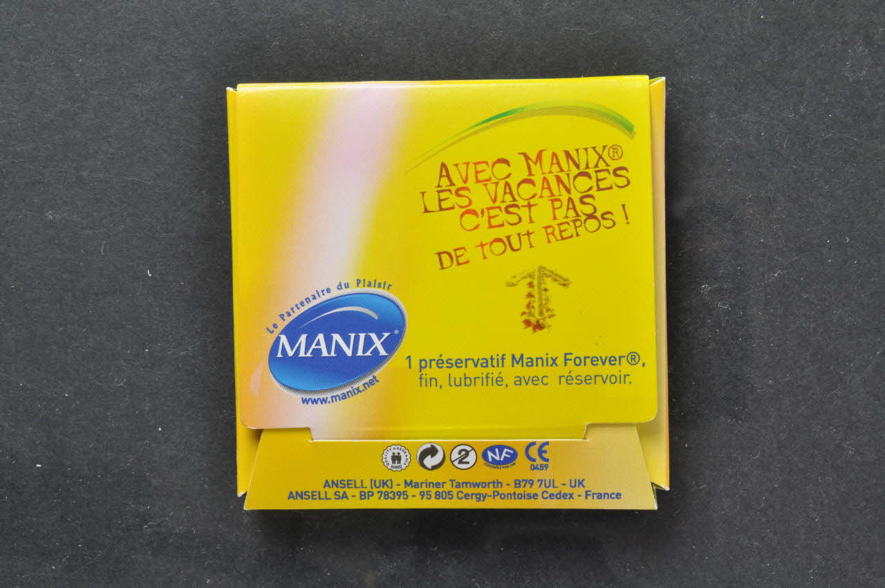Préservatif, pochette, "Avec Manix les vacances c'est pas de tout repos"